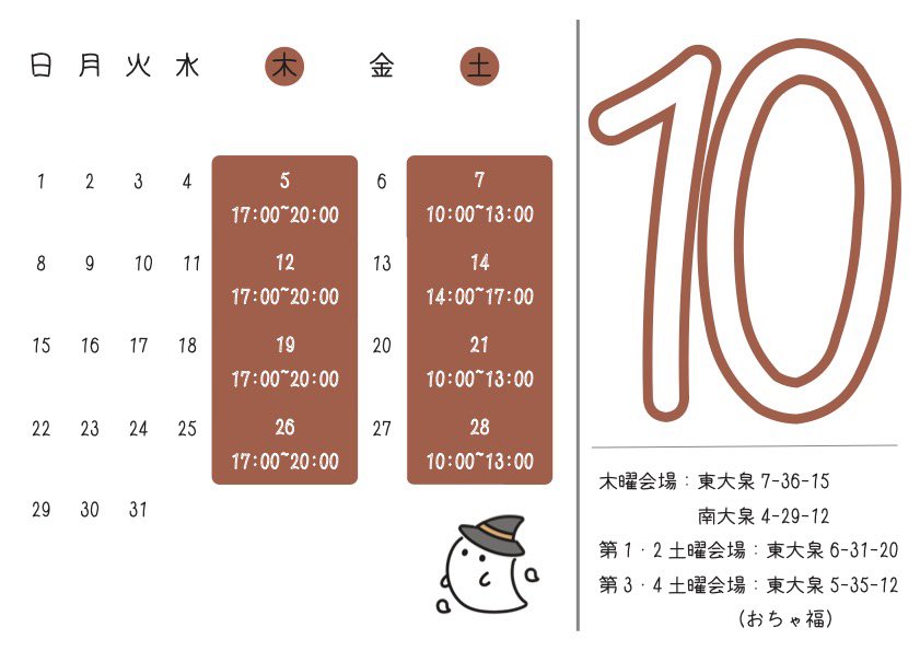 10月のカレンダーはこちらです👇
