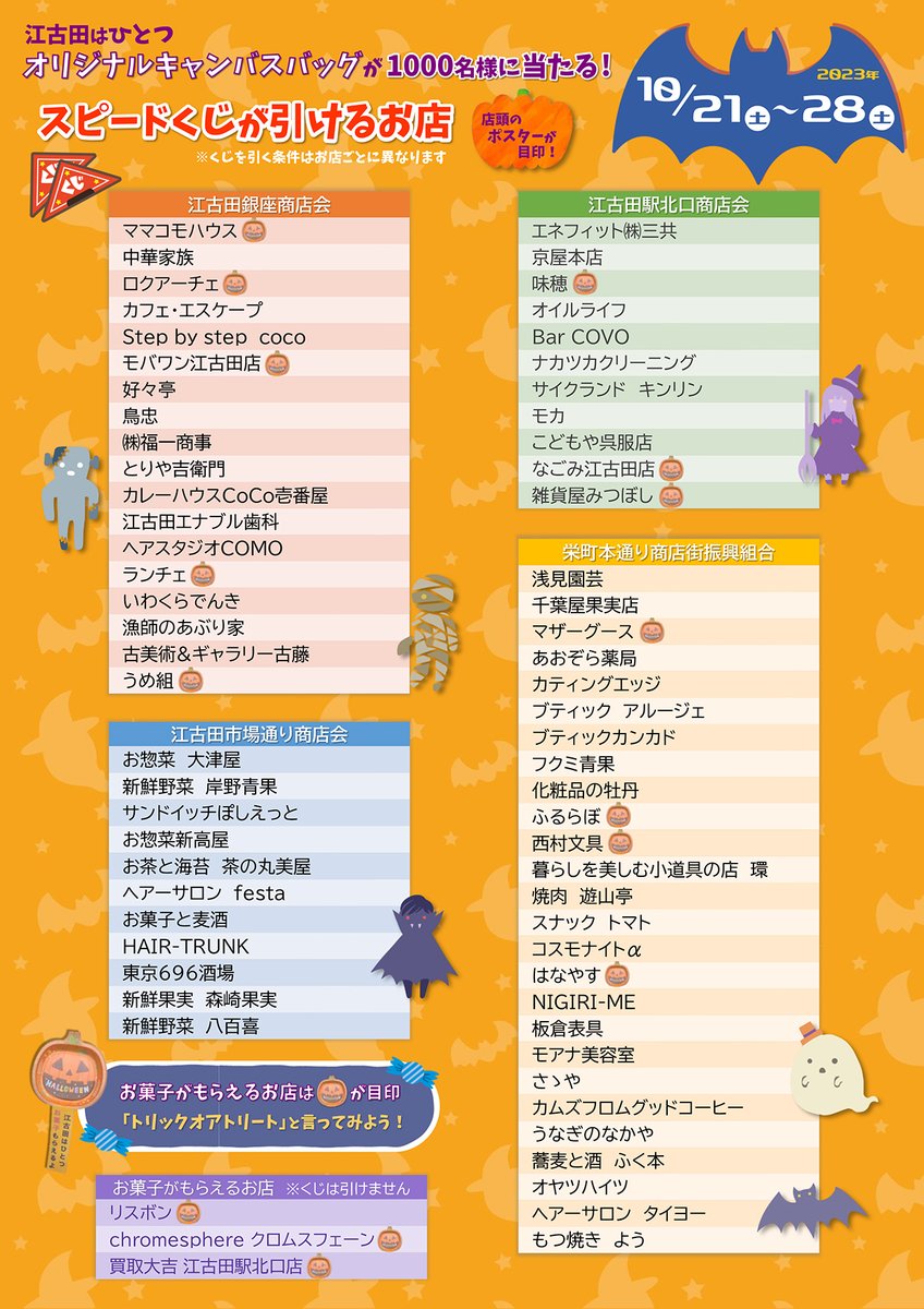28日(土)13時〜17時は仮装してお菓子がもらえる「江古田ハロウィン」も実施しますよ〜🍭