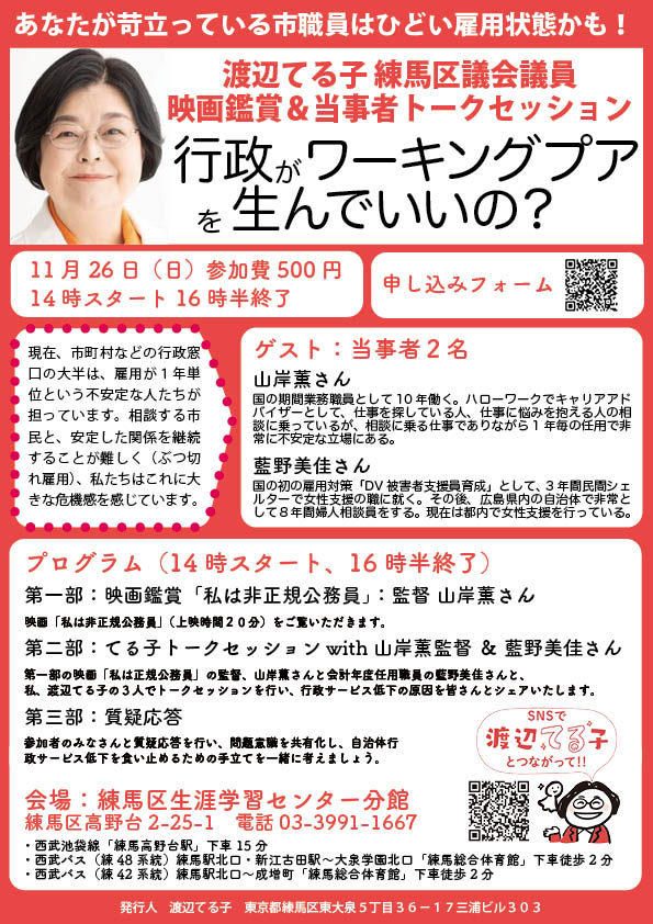 さて、今回、非正規公務員という当事者のゲストをお迎えしてのトークイベントです。