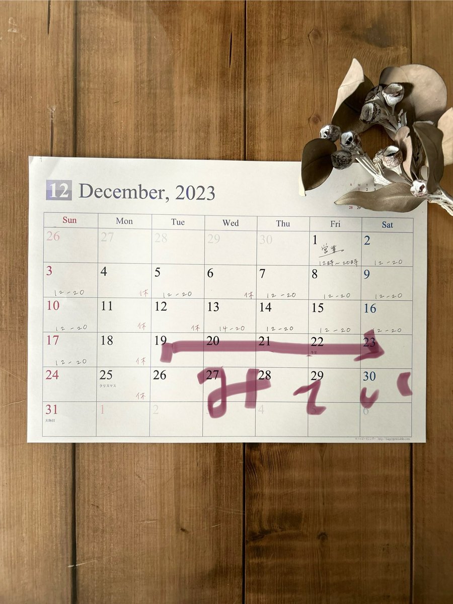 🎄 12月営業のお知らせ 🎄