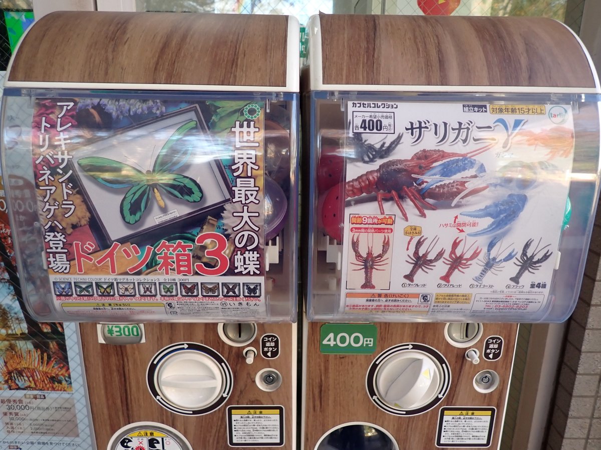 サービスセンター入口に設置しているカプセルトイ、人気のザリガニはそのままで、一部品揃えを更新しました🦋🦀‼