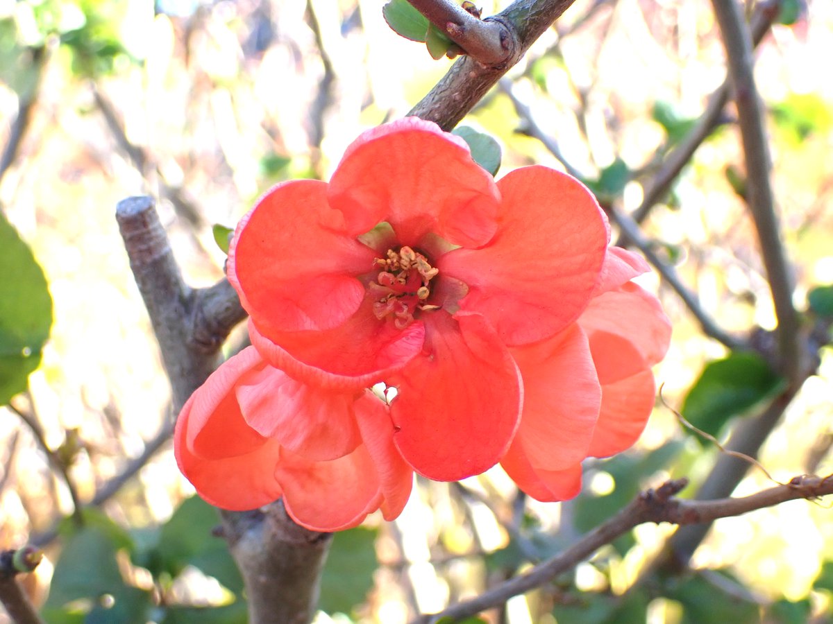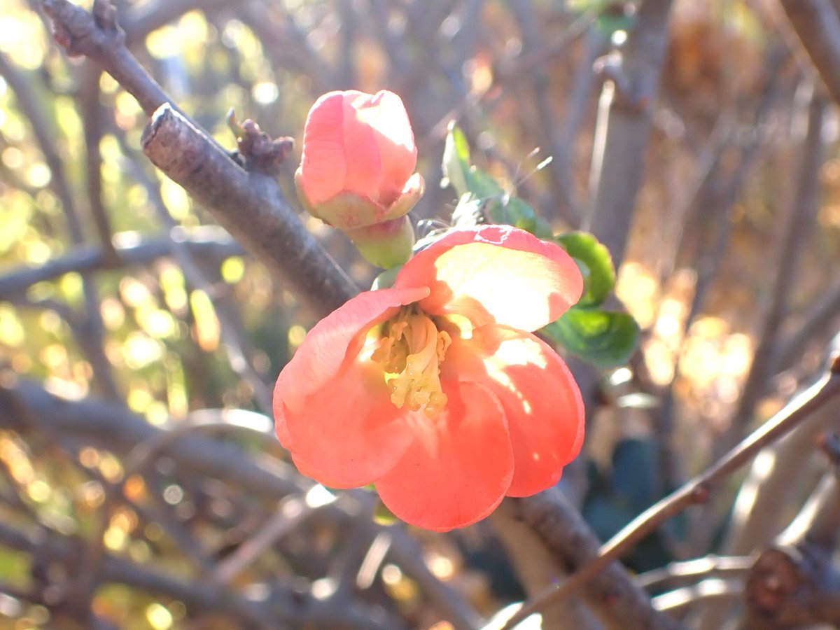 ボート乗り場付近ではボケが咲き、一足早く春が来たようです💮😍