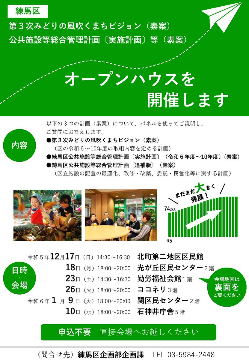 「第3次ビジョン」および「公共施設等総合管理計画〔実施計画〕」等の素案について、オープンハウスを開催します。