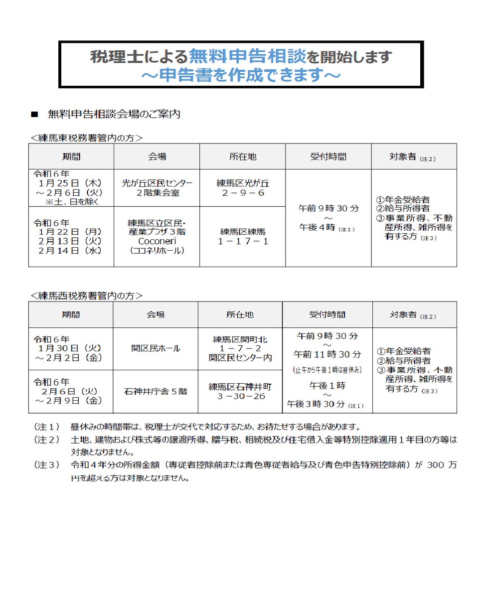 【問合せ】練馬東税務署03-6371-2332 練馬西税務署03-3867-9711