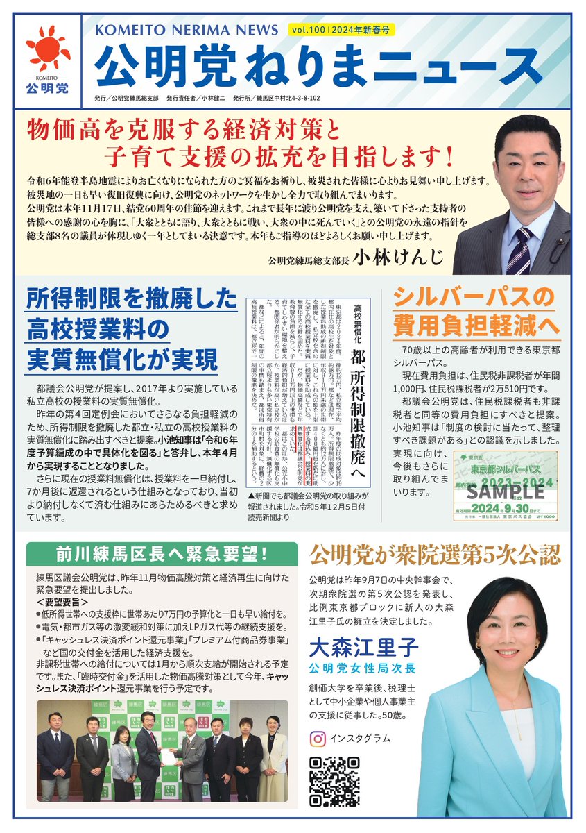 公明党ねりまニュース新春号が1月28日(日)の朝刊各紙に新聞折込されます。