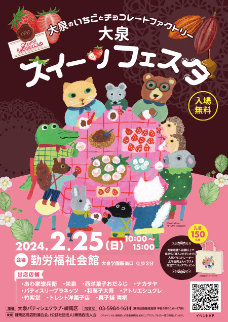 2月25日に勤労福祉会館で行われる「#大泉スイーツフェスタ」に出展します。