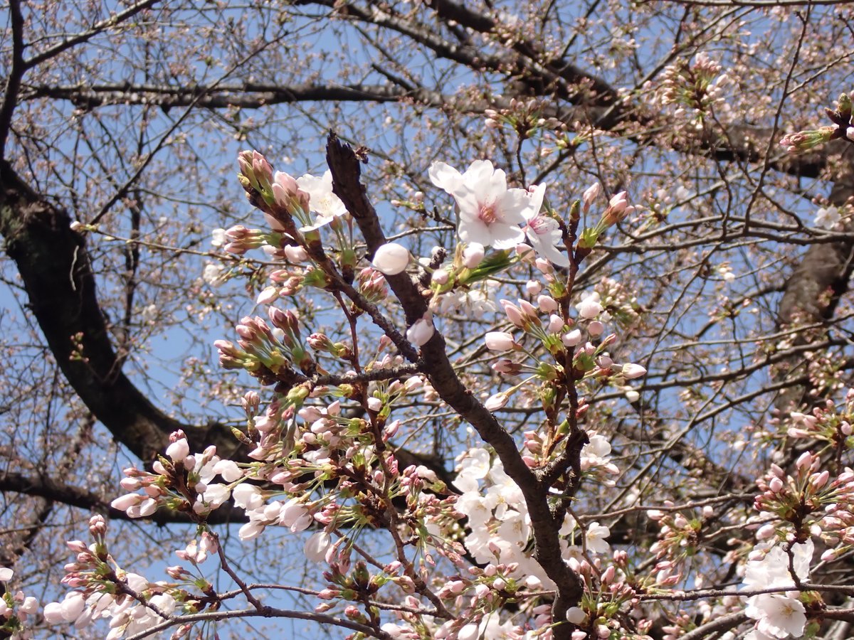 A地区野球場前にある「ねりまの名木」ソメイヨシノ並木が5分咲きになりました🥰‼