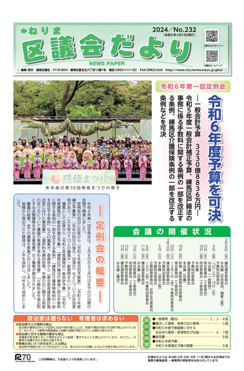 【ねりま区議会だより第232号を発行しました】