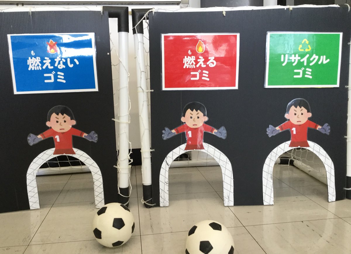 サッカーのシュート大会だよ!ゴミの分別クイズに答えてシュートするんだよ。大人も子供も誰でも参加出来るよ!みんな来てね♬