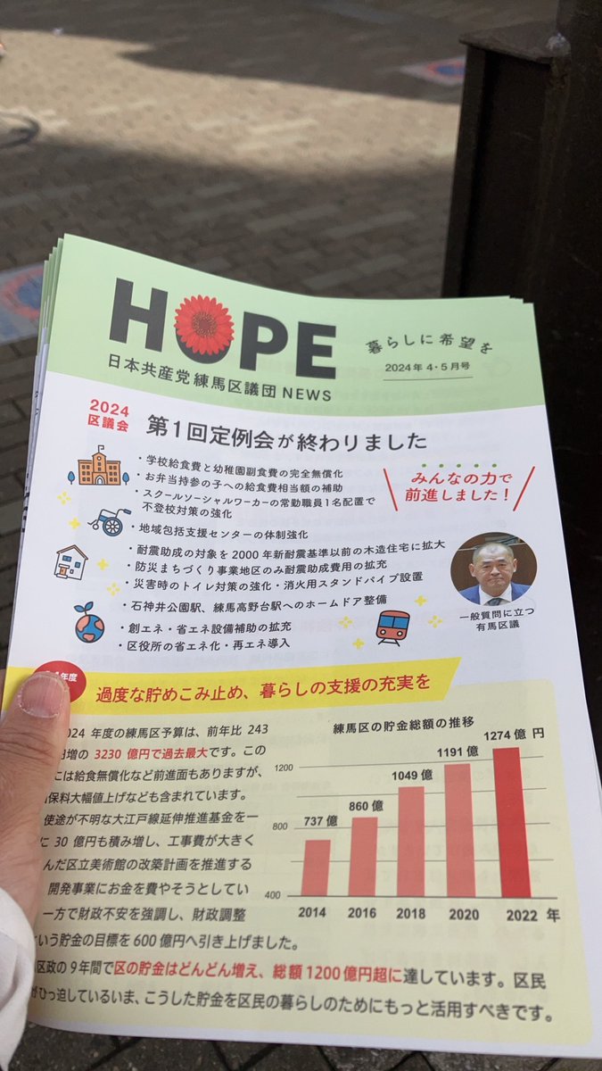 区議団ニュースHOPE(練馬区議会第1回定例会の報告)をお配りしました!