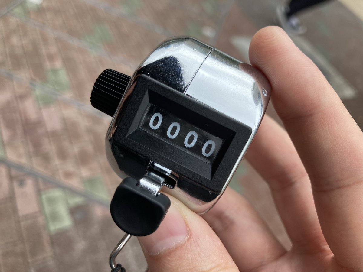最終日にあたり、やり残したことはないか乙武さんに聞いたところ「有権者と直接コミュニケーションがしたい」と言われました。ということで、本日はまったく選挙カーに乗らず、江東区内を歩き続けることにしました。私が深夜にドンキで買ってきたカウンターで #車椅子1000人ハイタッチ を目指します。