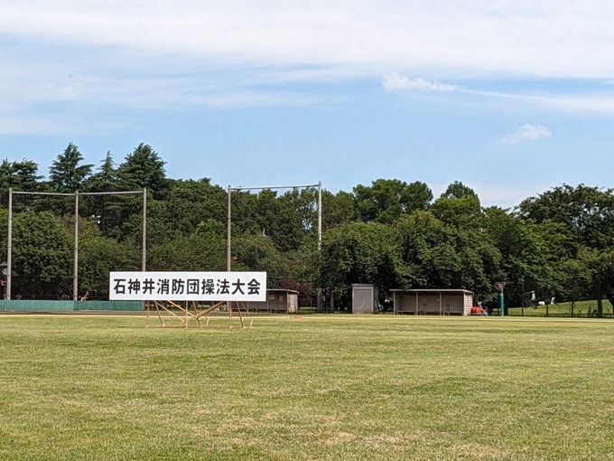 石神井消防団操法大会見学しています 5人の団員で可搬ポンプを操作し、消火活動します。 基準タイムが設定されていて、その他にもホースの操作などの審査基準で成績がつくようです。 消防団員の皆さまの日頃の訓練の見せどころ。多くの方に見てもらいたいなと思います 石神井公園の新緑がまぶしい!