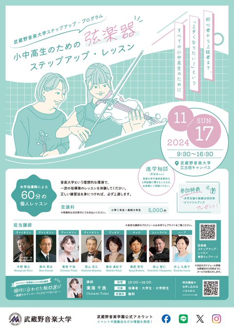 【イベント情報】 「小中高生のための弦楽器ステップ・アップ・レッスン」のお申込み受付中です♪ 音楽大学という理想的な環境で、一流の講師陣のレッスンを是非体験してください。 ▼詳細はこちらから https://musashino-music.ac.jp/entrance/department/orientation/examination_lecture2024/string_clinic1117…