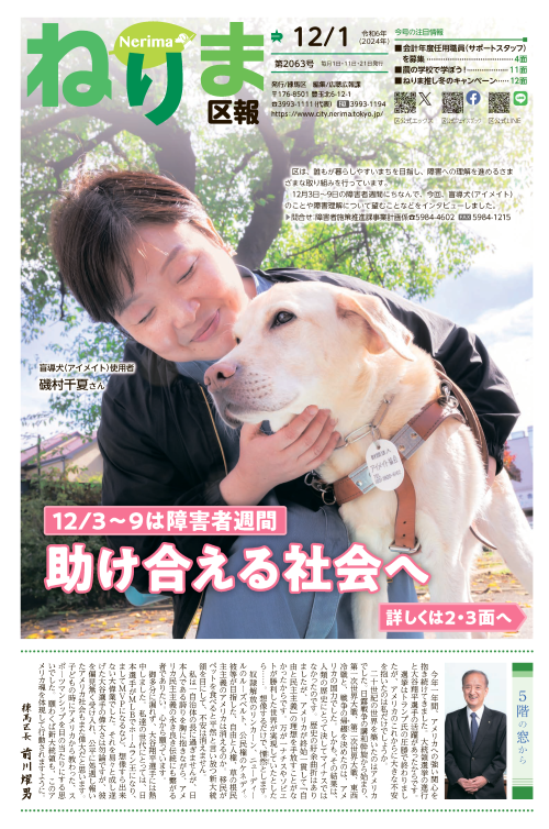 【ねりま区報12月1日号を発行】 主な内容はこちら ・12/3~9は障害者週間 助け合える社会へ ・令和7年度の会計年度任用職員(サポートスタッフ)を募集 ・冬の「#ねりま推し」投稿キャンペーン 電子ブック版:https://catapoke.com/viewer/?open=a8e7f… https://city.nerima.tokyo.jp/kusei/koho/kuho/index.html… #区報 #練馬区