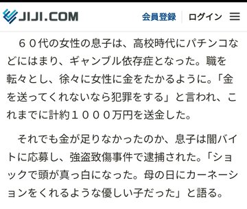 ONLINE オンラインカジノによる ギャンブル依存症の影響で、 「闇バイト」に応募も。 関わった本人のみならず、家族、地域、被害者と被害者家族、地域も不幸に。 オンラインカジノ取り締まりと、 ギャンブル依存症対策を急いで! 大阪IRは大丈夫?