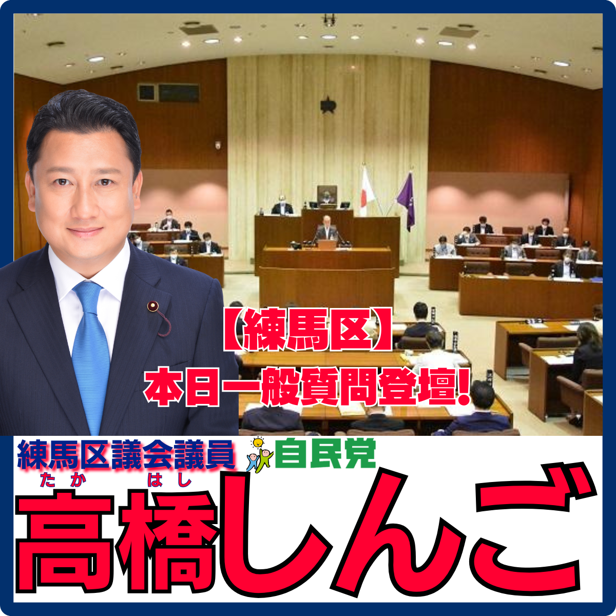 こんばんは、練馬区議会議員高橋しんごです。 本日、練馬区議会令和8年第1回定例会において、自由民主党会派を代表して一般質問に登壇しました。衆議院選挙のさなかであっても、区政の課題は止まりません。区民の..