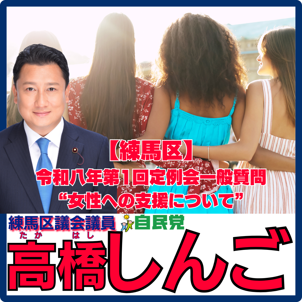 こんばんは、練馬区議会議員高橋しんごです。本日は、先日行われました“令和八年第一回一般質問 “女性への支援について””をアップします。※未定稿・多少加筆現筆有り◆質問(高橋)次に、女性への支援について..