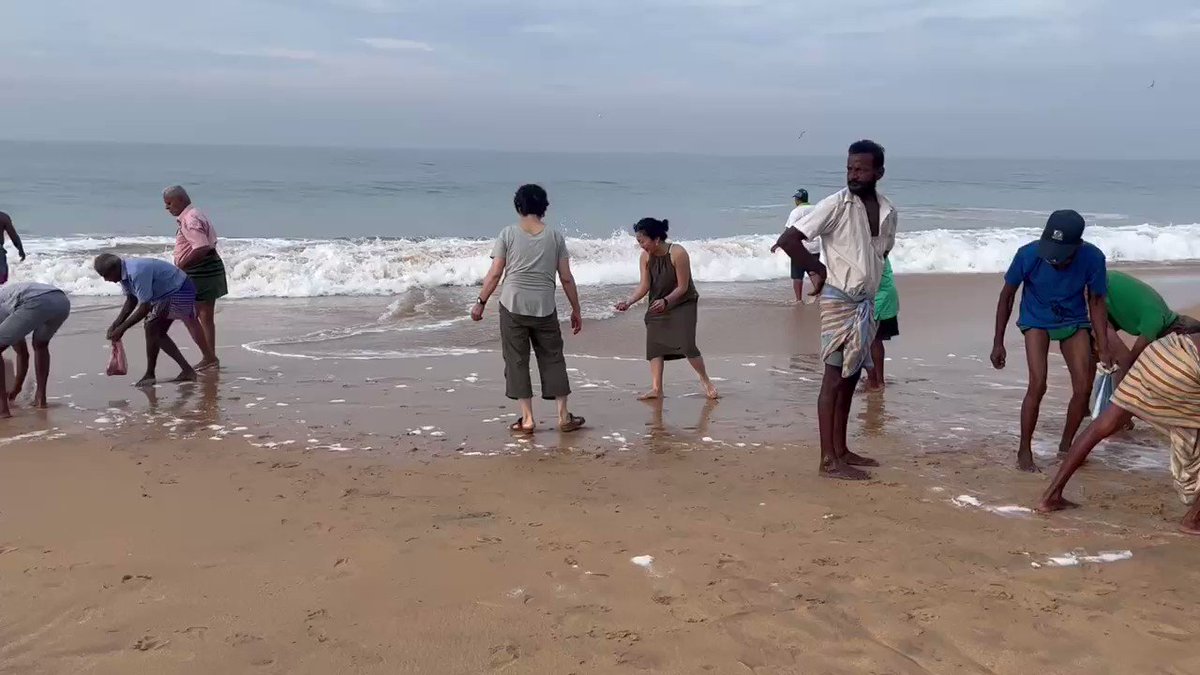 私漁師になりました旅先の朝の散歩中スリランカで地引網漁が!引き上げられた網に小さな魚がいっぱい!溢れちゃう魚を漁師さん達がみんなで拾っていたので、同じ農林業者の血が騒いでしまって、一緒に頑張って拾いま..