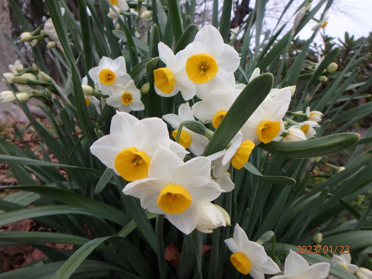 ただいまの時間、公園は雪が降っています。都民の森の #スイセン です。 #自然観察 #水仙 #城北中央公園