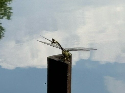 【見ごろの生き物】石神井池でウチワヤンマに逢いました水面に映った雲と今日の酷暑で、早くも盛夏を感じます今年の夏も長そうですね#石神井公園#石神井公園昆虫図鑑