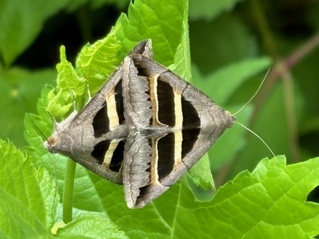 【見ごろの生き物】草地広場で、ナカグロクチバのペアに逢いましたアールデコ調幾何学模様×2で、モードな蛾ですね#石神井公園#石神井公園昆虫図鑑