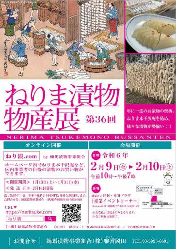 【第36回ねりま漬物物産展を開催】「ねりま本干沢庵」など、様々な#漬物を販売します。ぜひご来場ください。日時:2月9日(金)~10日(土)場所:区民・産業プラザ3階、産業イベントコーナーwww.cit..