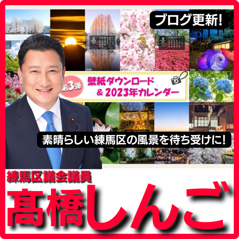 こんにちは、練馬区議会議員髙橋しんごです。 区のホームページ内で、区内で撮影