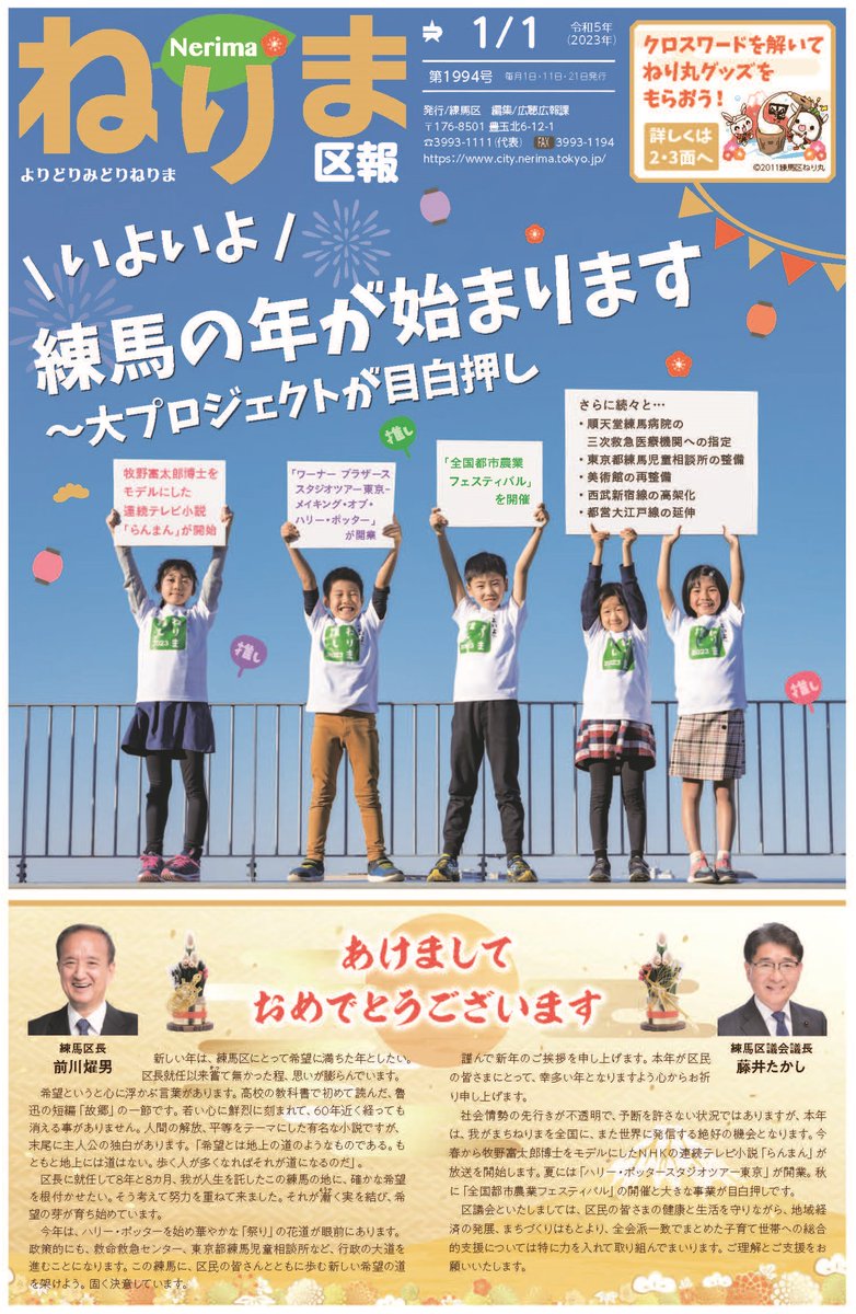 【ねりま区報1月1日号を発行🎍】今号では、いよいよ練馬の年が始まります「ねりま推し2023」、成人の日のつどいなどの情報を掲載しています✨是非ご覧ください😀電子ブック版:www.catapoke.co..