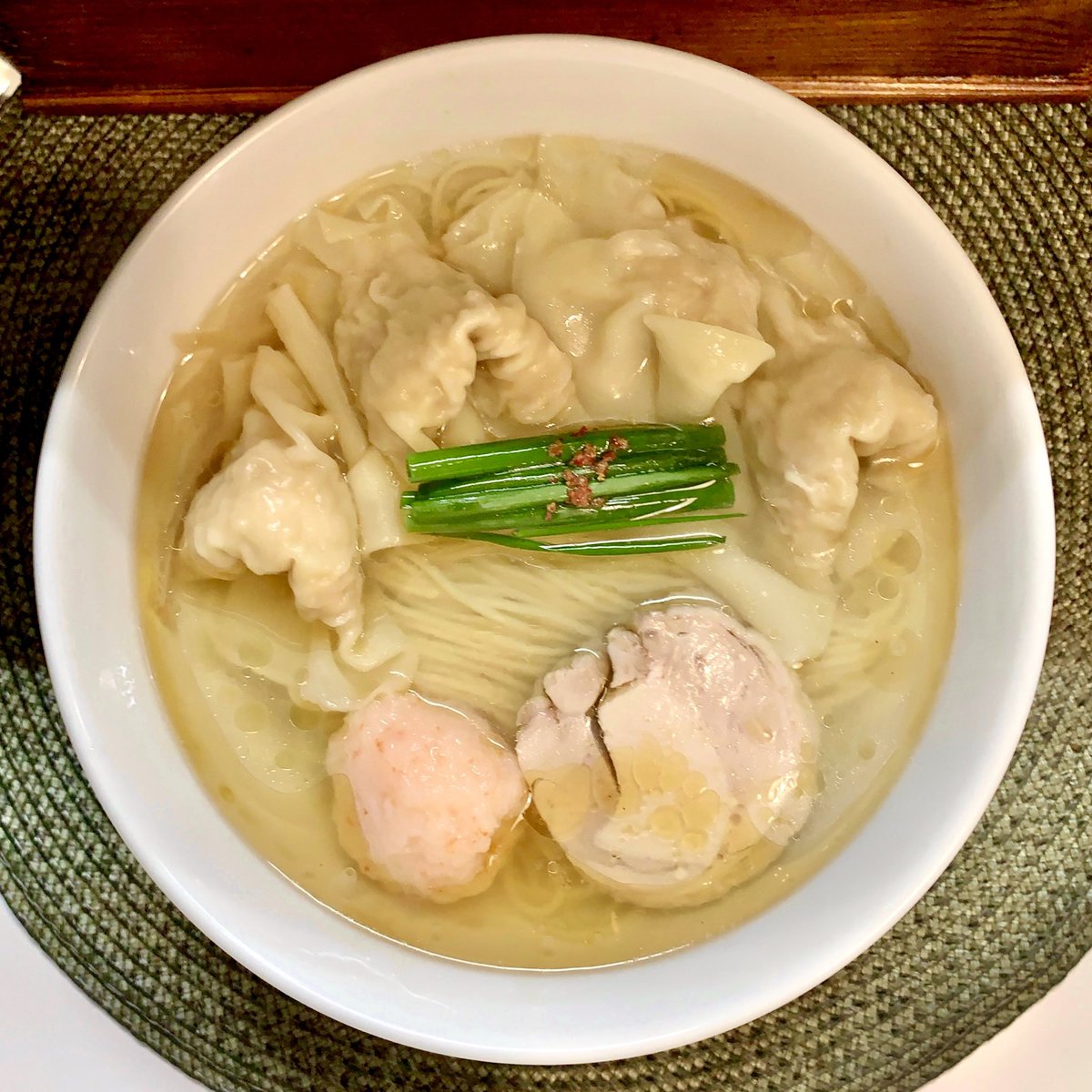 麺や 金時 @江古田 塩ワンタン麺¥1300 透き通ったスープは深い鶏の旨みと中華のようなバターのようなコクが超美味😍ワンタン麺にすると鶏肉と軟骨ぎっしりの巨大ワンタンが4つといきなりボリューミーで大満足😋ご馳走様でした🙏