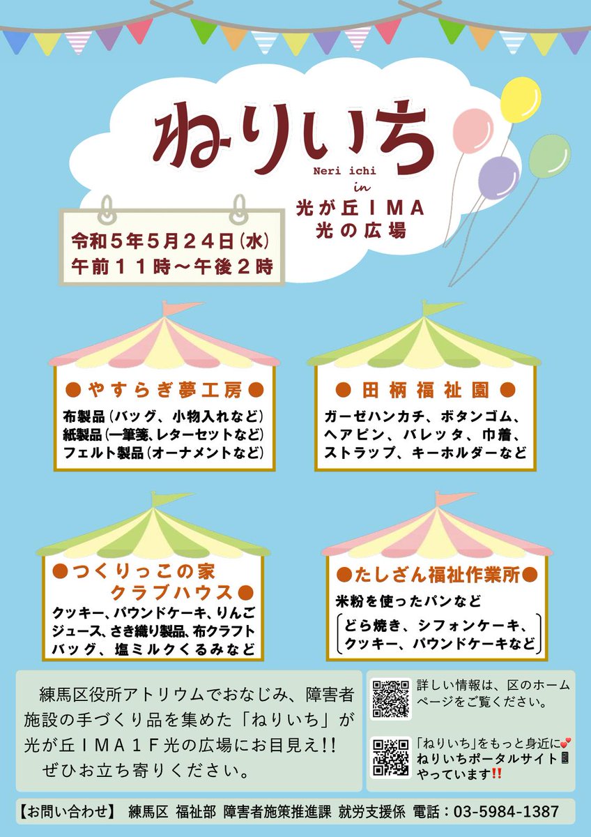 【ねりいち㏌光が丘IMAを開催します】区役所でおなじみの手づくり品販売市場「#ねりいち」が光が丘IMAにお目見え❗️5月24日(水)11時~開催します‼️光が丘地域で初めてのねりいちです✨魅力的な商品..