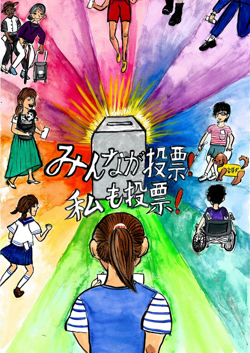 【ポスターコンクール作品紹介No.3】昨年度の東京都ポスターコンクール入選作品をご紹介。今回は大泉第四小学校・山脇桃乃さんの作品です。「みんなで投票に行くんだ!」という前向きな気持ちを感じさせます。#..