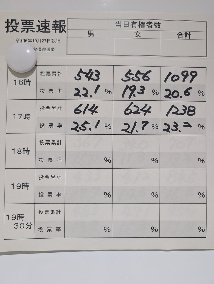 さきほどの那覇市・小禄支所の投票率。この時間にしては混雑している印象です。各地でお祭りや運動会が多い週末。これから産業まつりなど花火を見に行く前にぜひ投票もお済ませくださいね〜