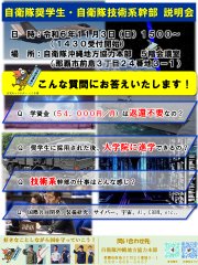 #自衛隊の#奨学金制度の説明会と、併せて最先端の科学技術に触れながら国際共同開発や特殊災害に対応している#自衛隊技術系幹部の説明会を行います。将来、自衛隊に所属しながら、最先端の科学技術を学びたい方、..
