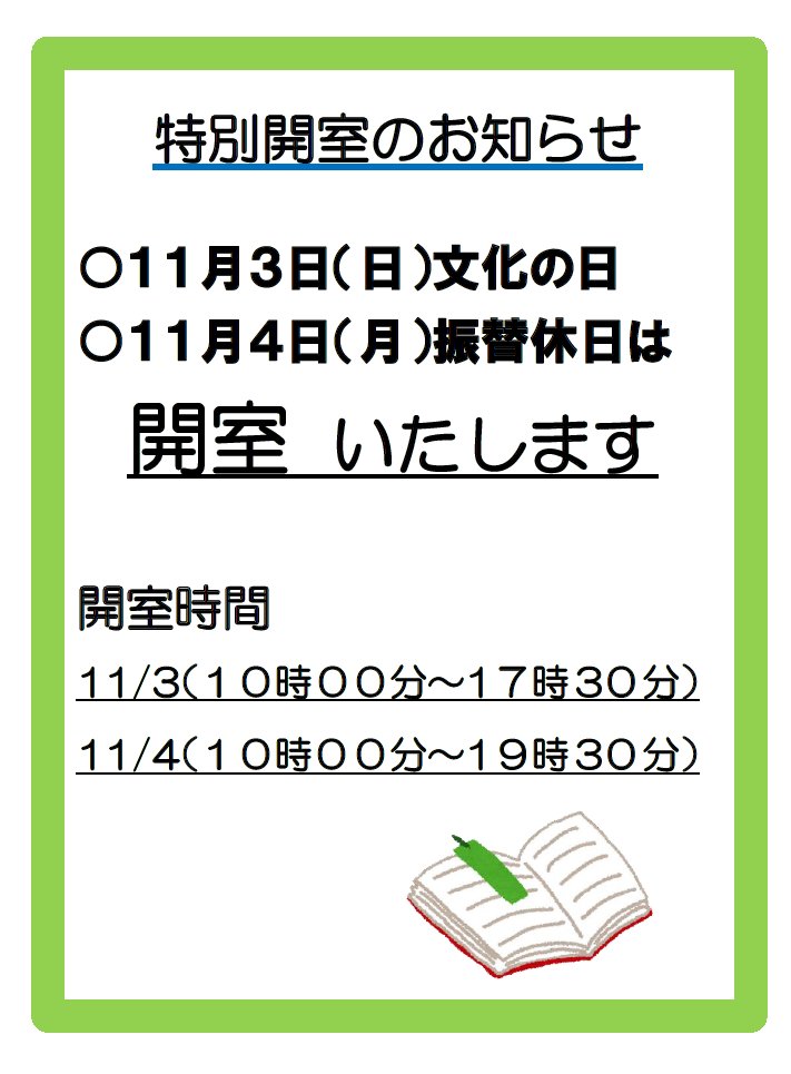 まーいまーいNaha図書室開室しております!・11/3(日)文化の日(10時~17時30分)・11/4(月)振替休日(10時~19時30分)文化の日はまーいで読書を楽しみませんか?★読書週間イベント開..