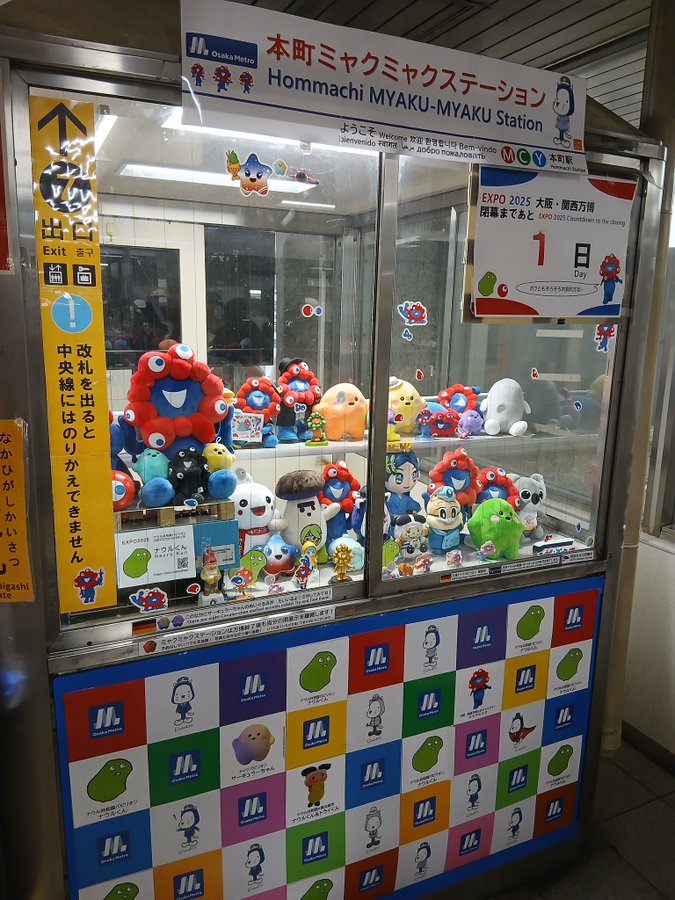 本町ミャクミャクステーションぬいぐるみだけでなく写真までw(゜o゜)w大阪メトロ様ありがとうございます#ミャクミャク#もずやん#ナウルくん#サーキュラー#イタリアちゃん#ココ#赤白赤ちゃん#スパーク#..