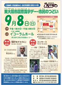 【国際識字デー・市民のつどい】東大阪市では、よみかきに不自由をされている方を支援する取組みとして「国際識字デー・市民のつどい」を開催しています。ことしは「識字をチカラに」と題した講演やコンサートを行い..