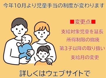 【今年10月から児童手当の制度が変わります】所得制限の撤廃や高校生年代への支給延長など、児童手当の制度が今年10月より変わります。詳細はウェブサイトにてご確認ください。https://city.hig..