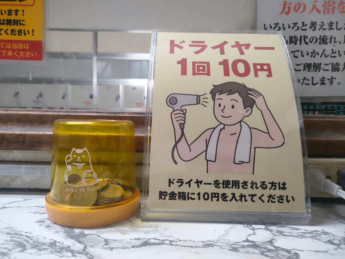 ドライヤーを貯金箱方式にしてるんですがたまに一円玉や五円玉が入ってます犯人探しはするつもりはありませんが定期的に入ってるんで常連さんの仕業やろなぁわしなら逆に百円玉とか五百円玉入れるけどな!毛染めも大..