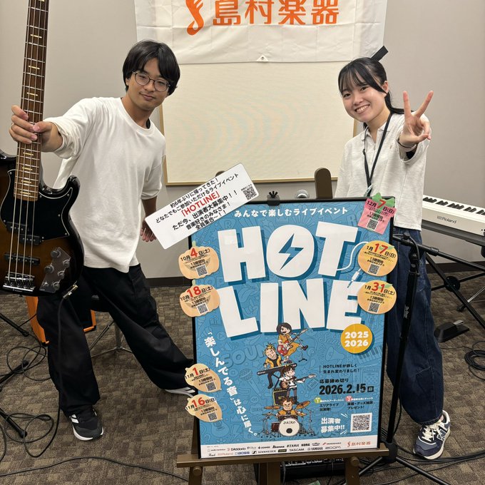 【本日開催】 HOTLINE2025-2026〜inららぽーと堺〜がいよいよ本日13時よりスタート! あいにくの雨ですが、開催場所を変更して島村楽器店内で行います! スタッフは元気いっぱい!準備万端! 雨に負けず、熱く楽しいライブにしましょう! 皆さんのご来場をお待ちしております! #島村楽器 #HOTLINE