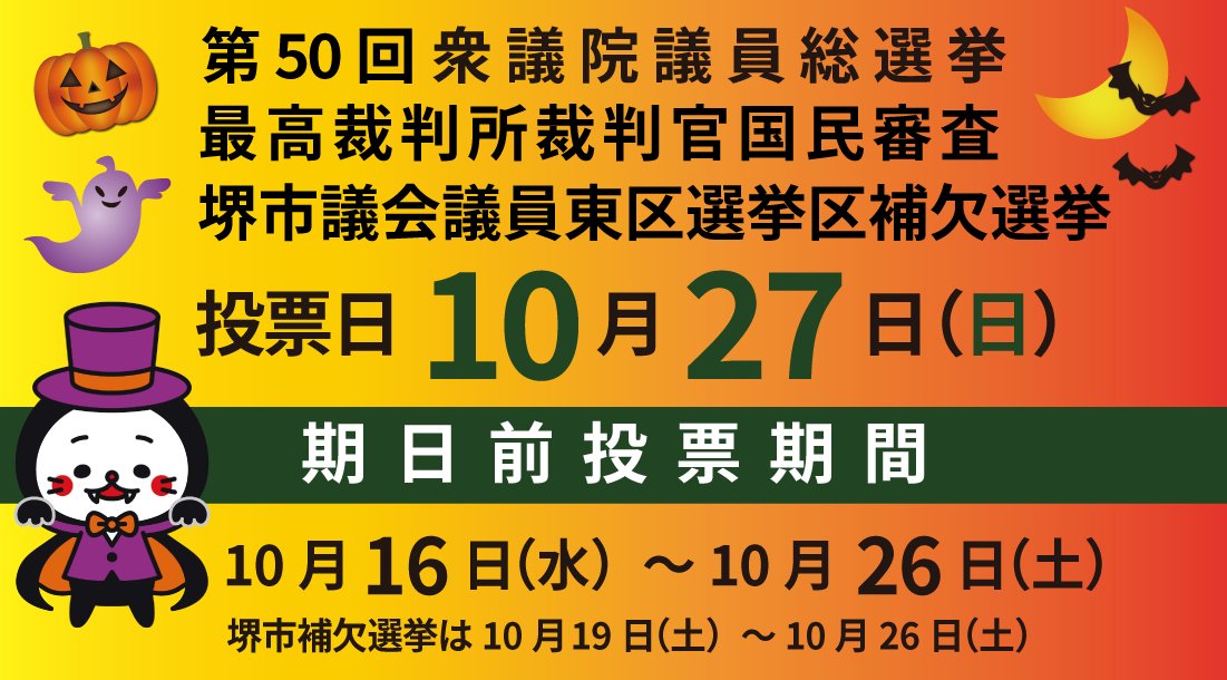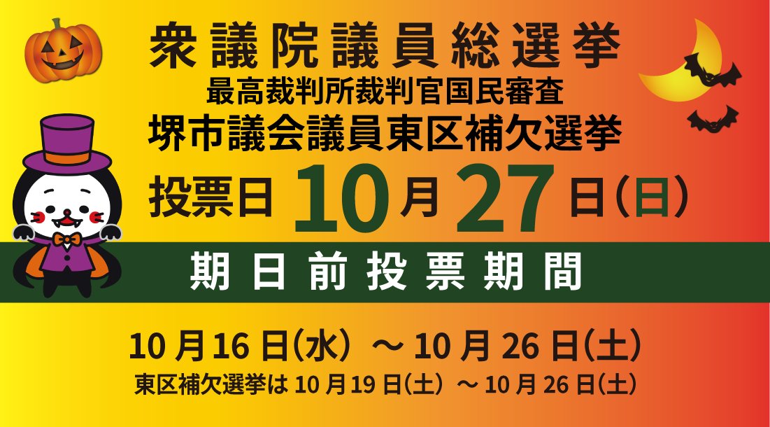 \期日前投票は8時半~20時/10/27は衆院選等の投票日です。当日投票に行けない方は、期日前投票が可能です。◇衆院選・最高裁判所裁判官国民審査10/16~◇堺市議東区補選10/19~選挙の詳細は↓h..