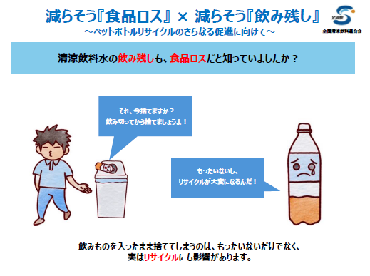 \飲み残しも食品ロスだよ/#ペットボトル飲料、最後まで飲み切ることで、#食品ロス削減と#リサイクルの両方に貢献できるんだよ♪詳細はHPへ↓https://city.sakai.lg.jp/kurash..