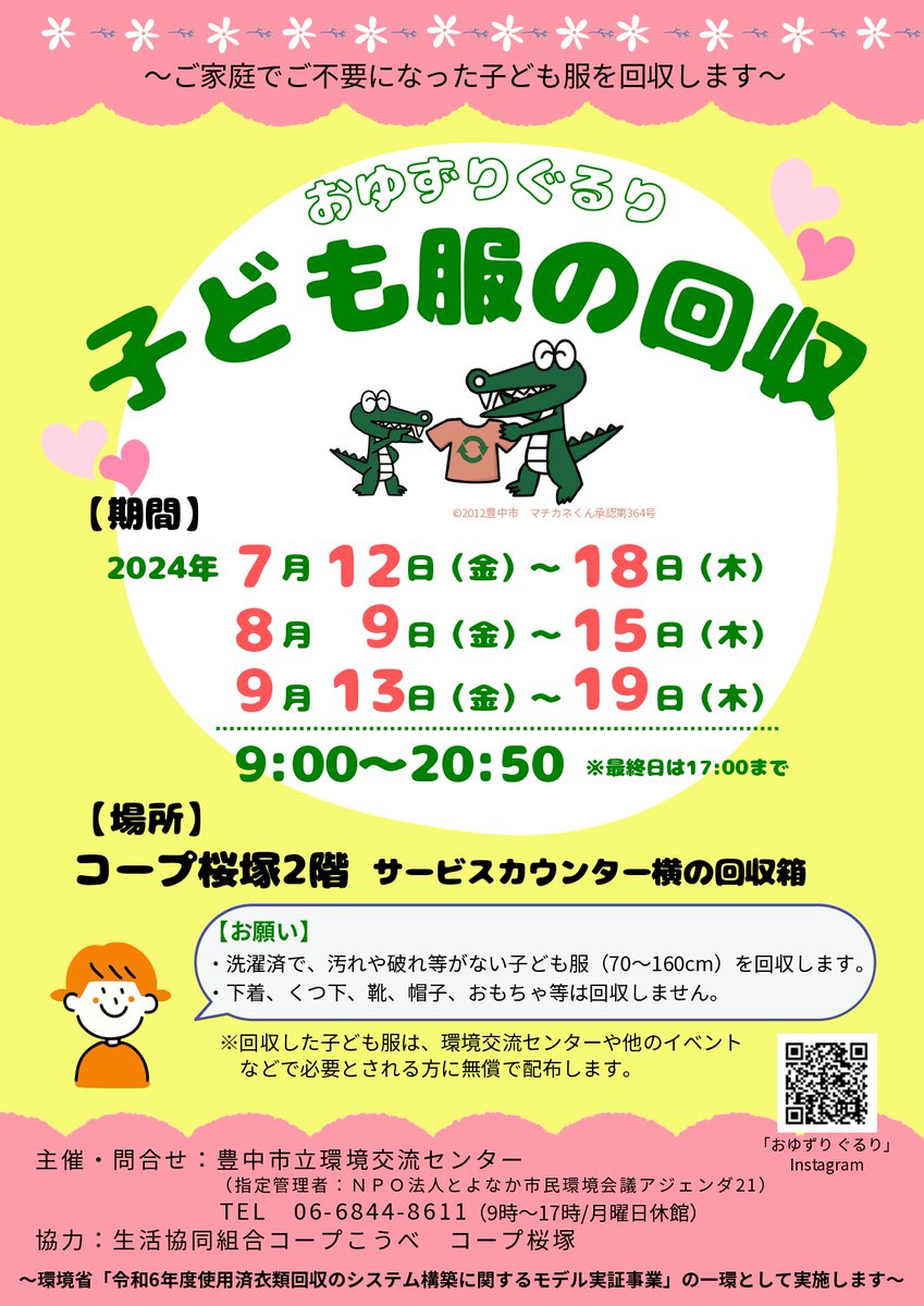 /ご家庭で不要になった#子ども服を回収します\子ども服が地域で循環する仕組み#おゆずりぐるりの取組みで70~160cmの子ども服を回収します回収した子ども服は#環境交流センターやイベント等で必要な方に..