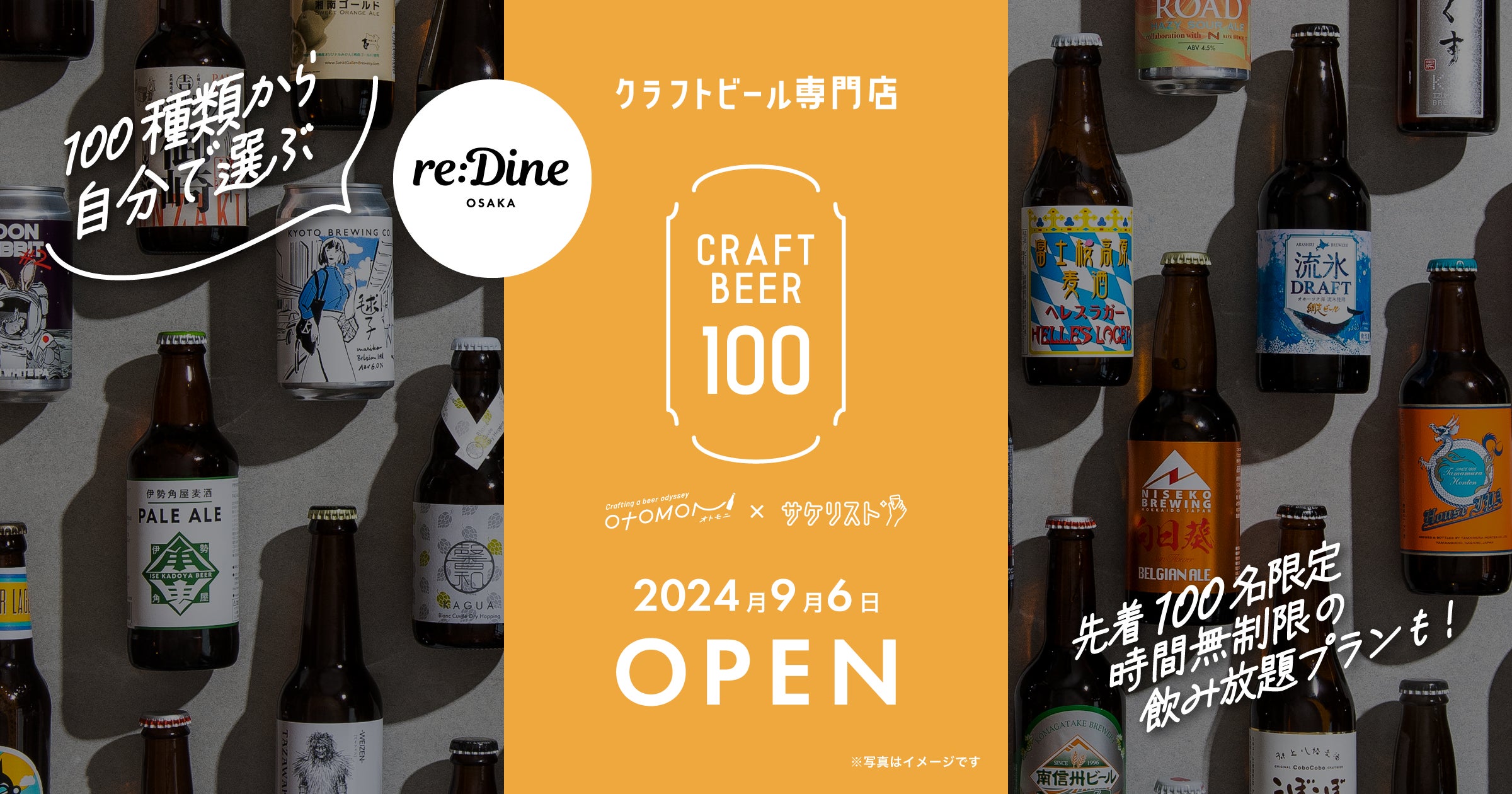 【大反響につき3店舗目オープン】驚愕の時間無制限100種クラフトビール飲み放題が楽しめる!「クラフトビール100 Otomoni×サケリスト」が2024年9月6日(金曜日)に大阪エリア初出店