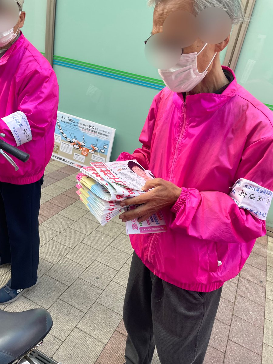朝6時50分、ビラを配布し始めたので蒲田警察署刑事課に電話をかけようとすると、慌ててビラを隠しました。変わらないな!共産党は