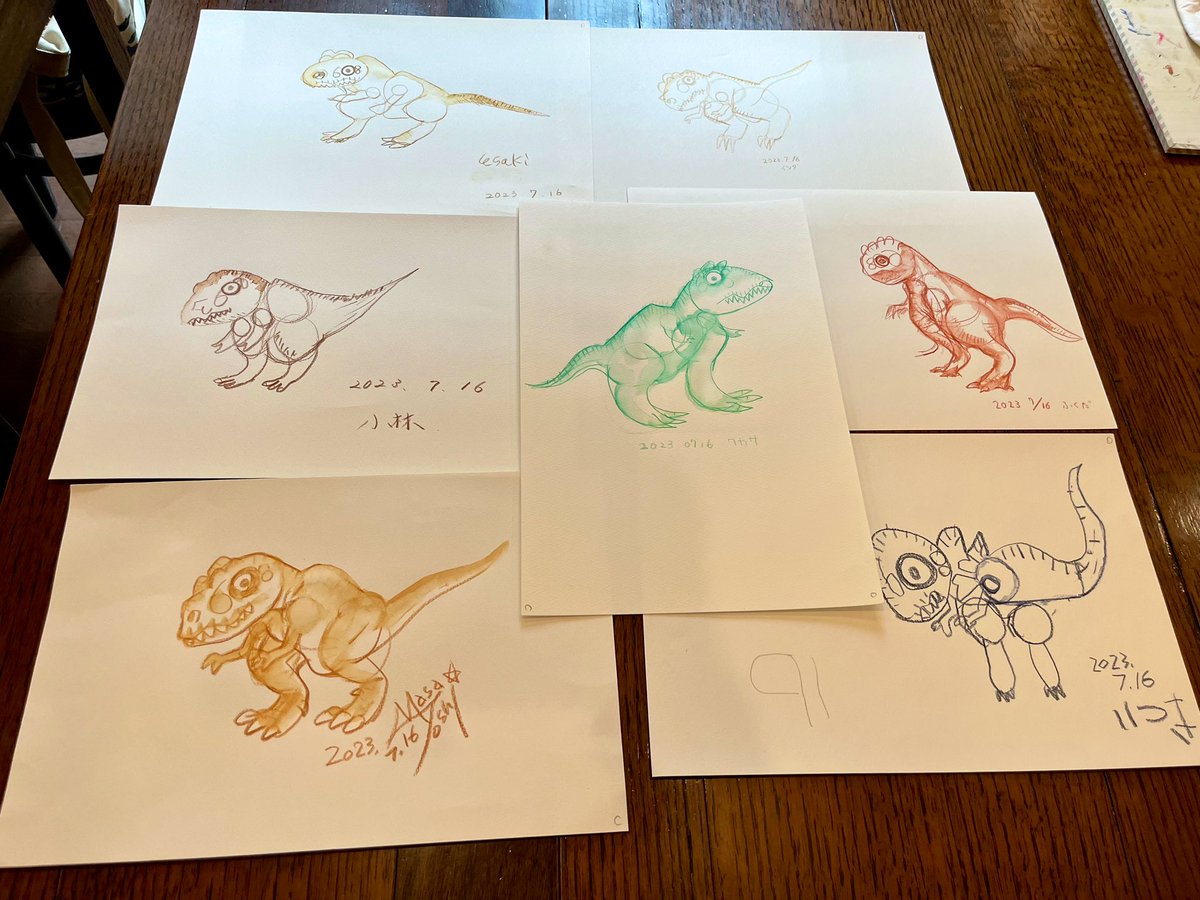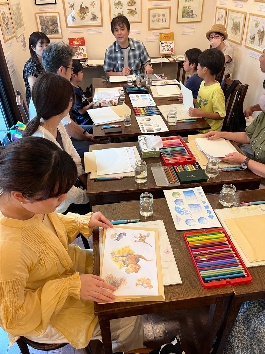 7/16(日)、山口まさよしさんのワークショップ「水彩色鉛筆で恐竜を描いてみよう!」が開催されました。水彩色鉛筆の使い方の基本やトレースダウンを教えていただいた後に、山口さんオリジナルの絵描き歌に合わせて恐竜の絵を描きました。個性豊かな恐竜たちが素敵でした🦖👏