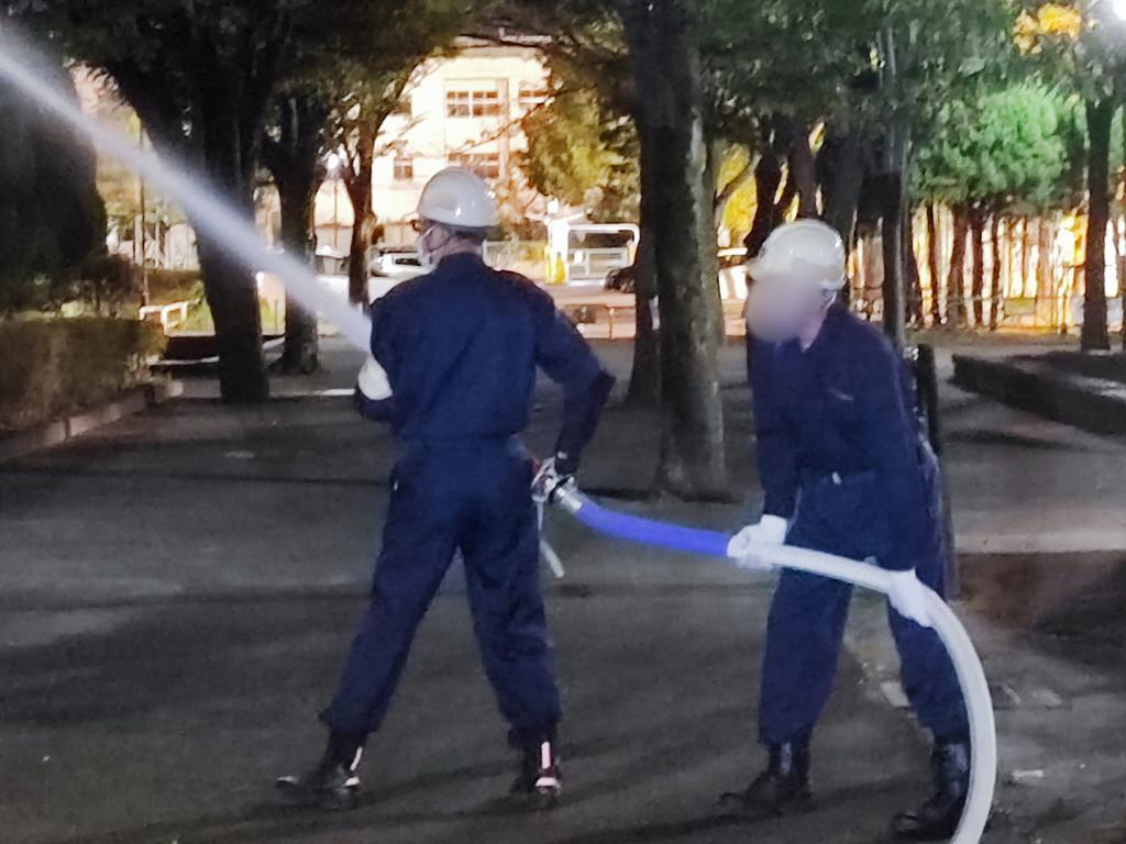 10月14日の夜は、町会の市民消火隊の定例訓練に参加しました。