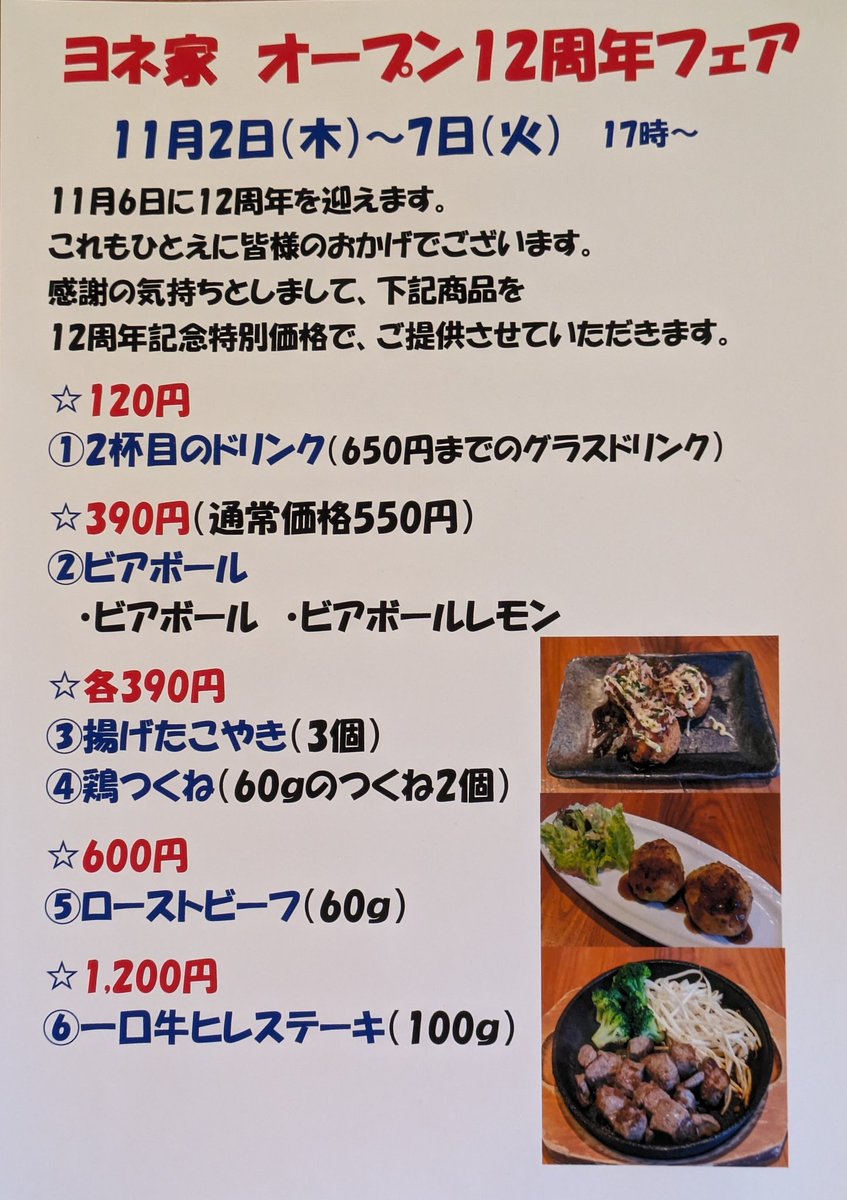 『ヨネ家オープン12周年フェア』