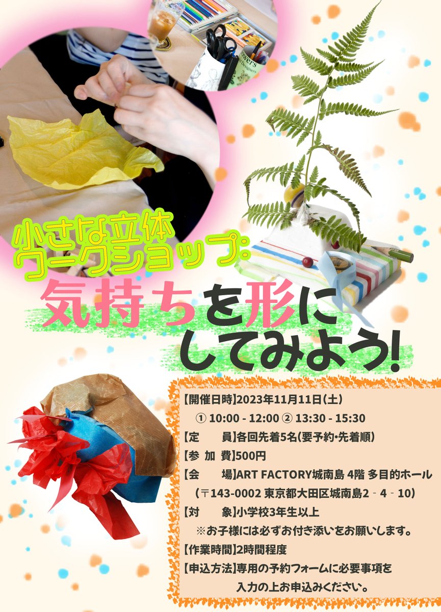 OPEN STUDIO 2023 出展アーティストの #中島裕子 さんを講師に迎え、【小さな立体ワークショップ:気持ちを形にしてみよう!】を開催します😆