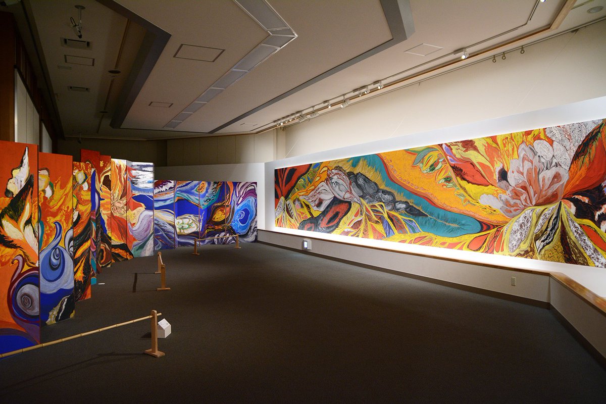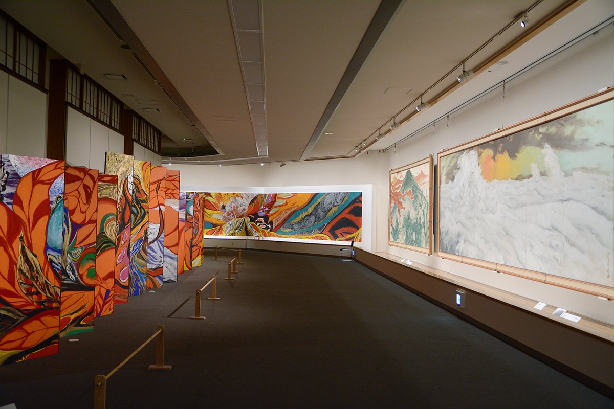 【龍子記念館】圧倒的なスケール感の濱田樹里の大作を展示する #高橋龍太郎コレクション 連携企画「#川端龍子 プラスワン #濱田樹里 #谷保玲奈 色彩は踊り、共鳴する」(前期)は12月3日(日)まで開催。この空間を体験しにぜひご来館ください