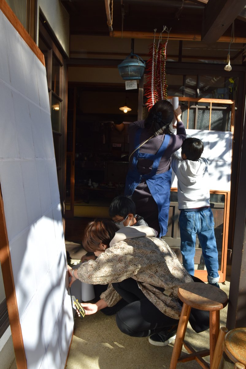 先週の講座で張ったまっさらな障子でお迎えしている今週の博物館です。今年は親子連れさんの参加が多かったのですが、無事張り終えてかまどで炊いたご飯を豚汁と共に皆で楽しくいただきました!小学生から実習中の大学生たち、70代の炊き出し先生まで。大家族っていいなぁ。